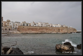 Mă tot gândeam despre ce să vă povestesc şi am decis să nu încep nici cu începutul şi nici cu sfârşitul excursiei. Am să încep din mijloc şi azi vă povestesc despre Monopoli, un mic orăşel situat pe malul Adriaticii, la vreo 30-40 de km sud de Bari. Nu era pe lista noastră, aveam planificat să ajungem la Matera în acea zi, dar ne-am dat seama că ne-ar fi fost destul de greu cu căruciorul pe străduţele abrupte, Bondarul era cam obosit după două zile de plimbare şi nu ar fi avut rabdare de stat în cărucior, aşa că am schimbat planul şi nu regret alegerea făcută.